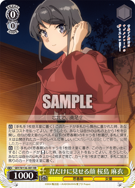 レベル1では集めた桜島麻衣を登場させ、レベル2のCXコンボ持ち桜島麻衣をサーチしつつ登場させます。