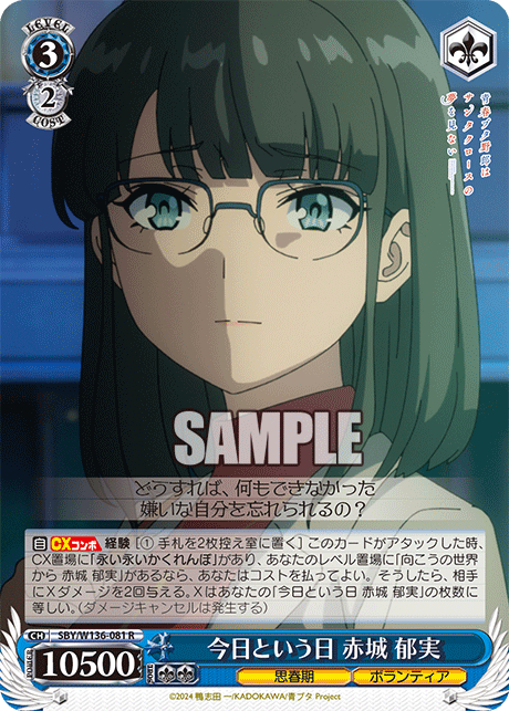 CXコンボで3ルックができ、その中の指定特徴キャラか指定イベントを1枚手札に加え、残りを山札の上か控え室に置くことができます。