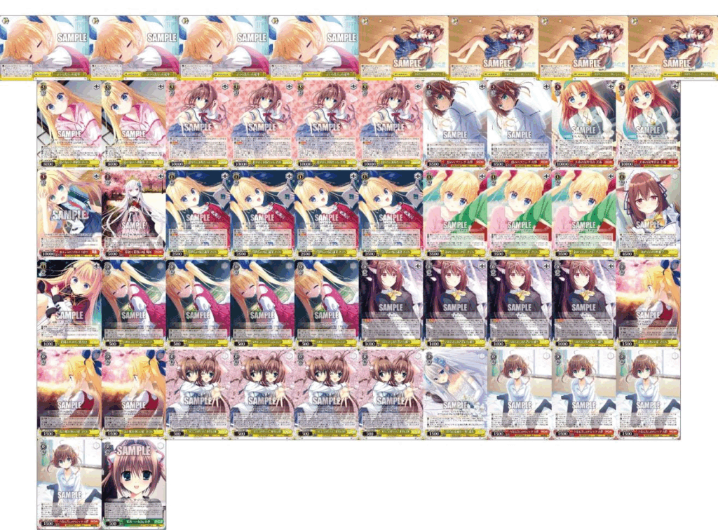 2008年に第1弾が出た最初期タイトルで、カード種類数もヴァイスシュヴァルツトップクラスの種類数を持つダ・カーポの新弾となります。