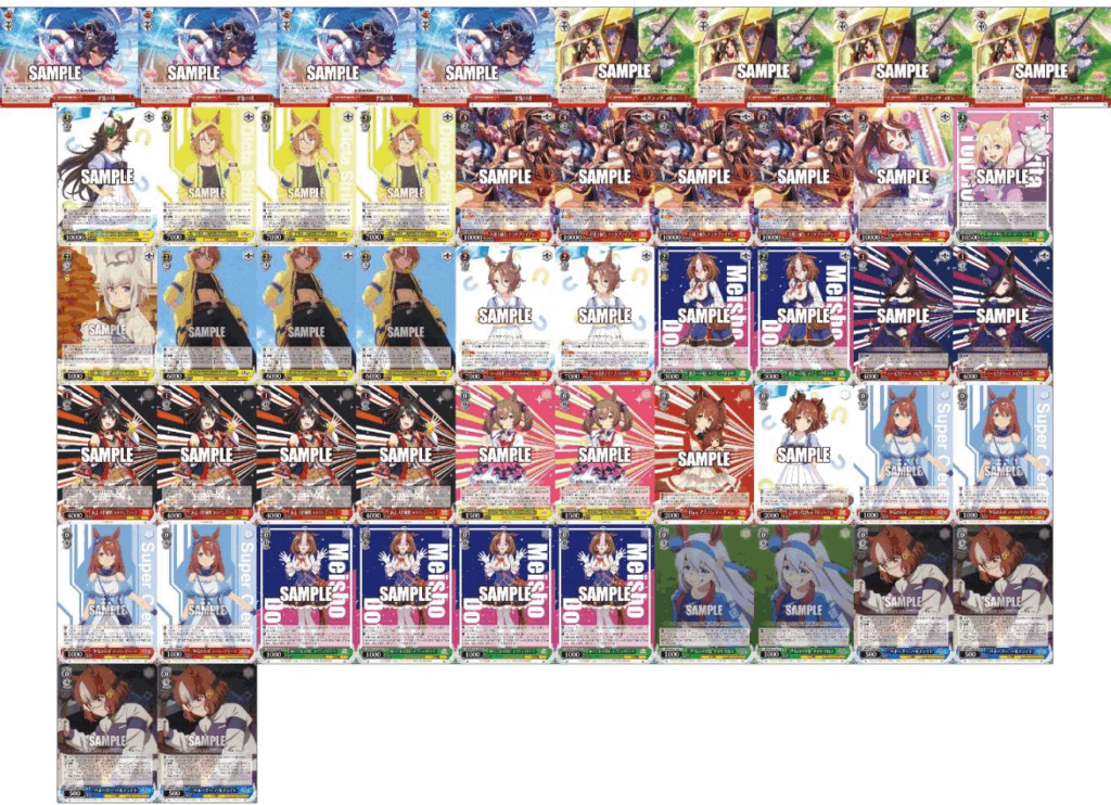 今回はブースターパックで収録数も多く、ウマ娘は過去2ブースター発売されていてタイトルのカードプールとしても広めになっています。